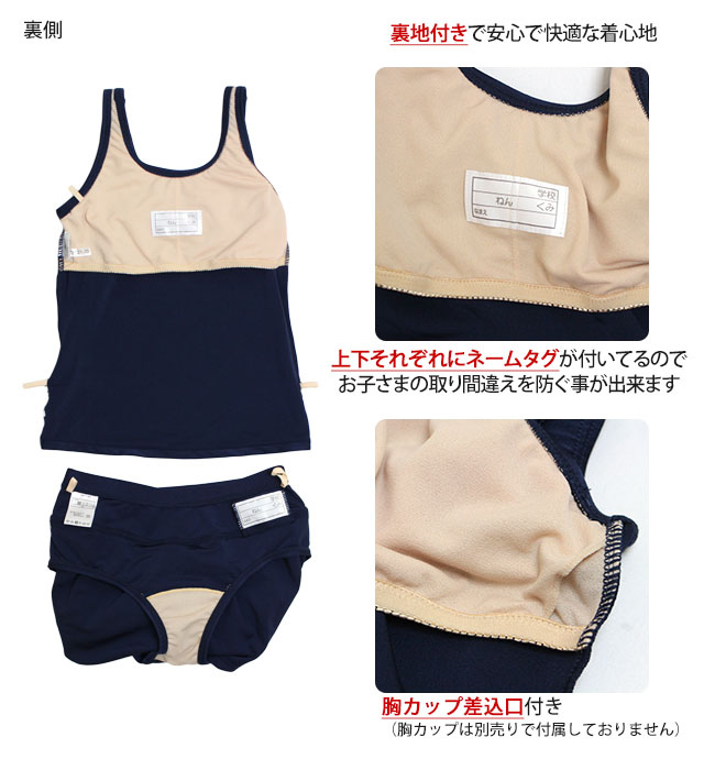 | 商品説明 | サイズ展開:130cm 140cm 150cm 160cm 170cm 対象:女の子 女児 女子 子供 キッズ ジュニア タイプ:セパレート 特徴:タンキニ トップス インナー付きキュロットパンツ 適用:プール授業 学校水着 ネイビー無地 ●EASTBOY(イーストボーイ) ●ゼッケン付き ●ネームタグ付き ●カップ取り付け可能(差し込みタイプ) ●吸水速乾 ●抗菌防臭効果 /td> |
