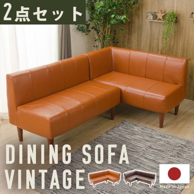 ダイニングソファ 2点セット ヴィンテージ 選べるコーナー 選べる脚カラー ソファ セット チェア 椅子 レイアウト自在 おしゃれ
