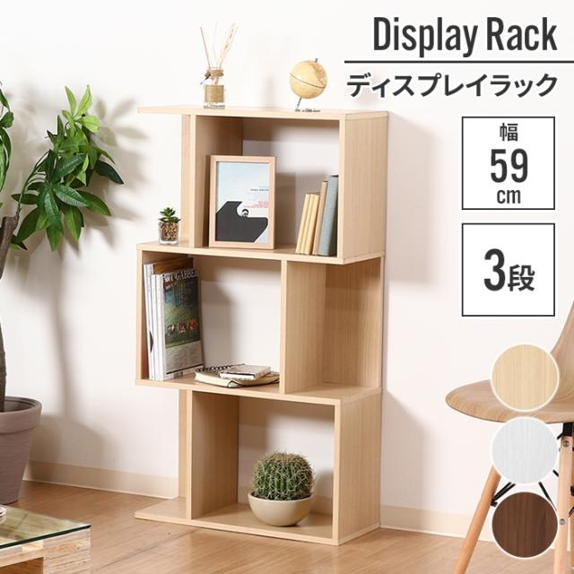 【値下げ】ラック 3段 木目調 59×24×106cm ジグザグラック オープンラック ディスプレイラック 棚 収納 フィギュア プラモデル トロフィー 写真 S型