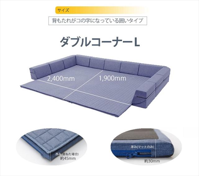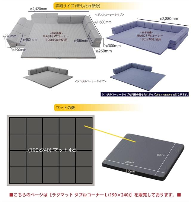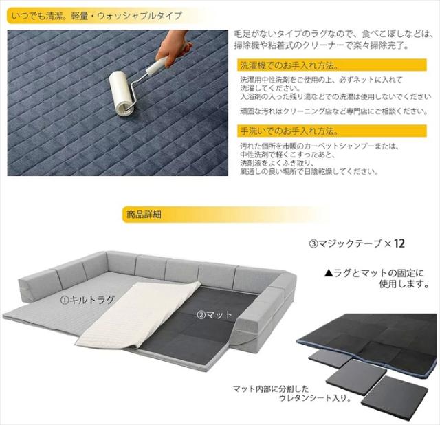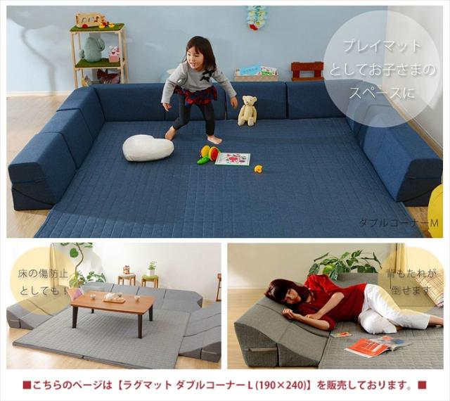 ダブルコーナーラグマット L 背もたれ付き ラグ マット 厚手キルト 和楽 ZONIA 190×240cm 子供 プレイマット