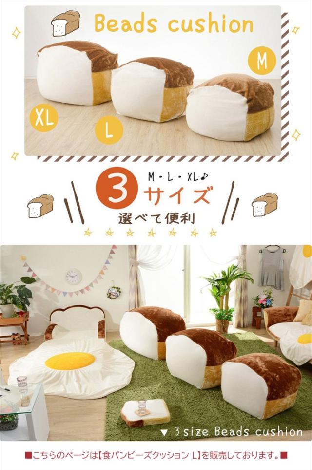 | 大人気の食パンシリーズ 「人をダメにする食パン」ビーズクッション Lサイズ。 お部屋を可愛くコーディネート。 可愛いだけではなく、座り心地もバツグンです。 カバーリングタイプで、お洗濯OK。 |