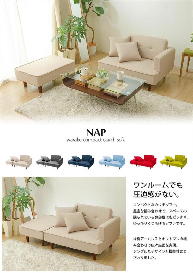 カウチソファ コンパクト ソファ ソファー クッション付き オットマン 片肘付き 樹脂脚 シンプル コーディネート自由 NAP