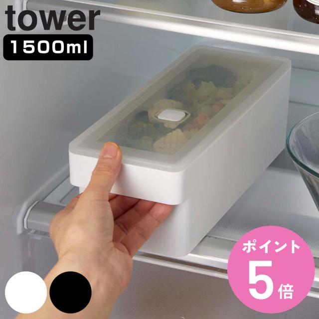 tower 奥まで使えるハンドル付き密閉フードコンテナ タワー ( 山崎実業 タワーシリーズ 保存容器 1500ml 密閉容器 密閉 保存 容器 レンジ対応 食洗機対応 冷凍保存 食品保存 フードコンテナ tower 山崎実業 キッチン)