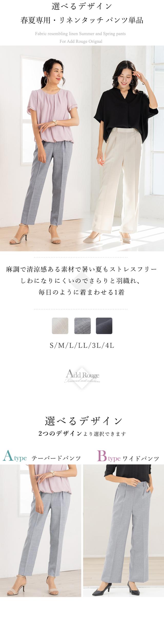 パンツ レディース 春夏 麻調 クールビズ きれいめ 単品 ウエストゴム テーパード ワイド パンツ 大きいサイズ 小さいサイズ 通勤 オフィス オフィスカジュアル 新作(b5324)