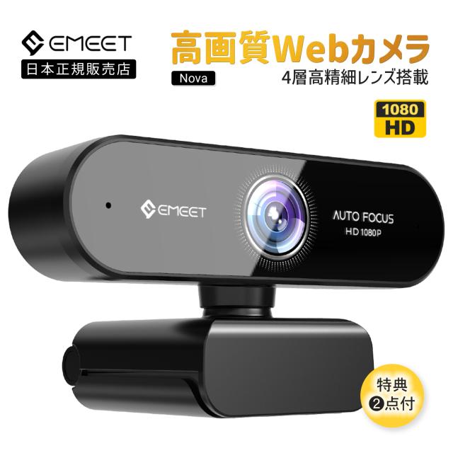 【冬セール10%OFF | 日本正規販売店】 EMEET NOVA ウェブカメラ WEBカメラ 1080P マイク内蔵 200万画素 ドライバー不要 USBカメラ 小型 軽量ストリーミング ウェブ会議 ウェブカム テレワーク リモートワーク オンライン授業 動画配信