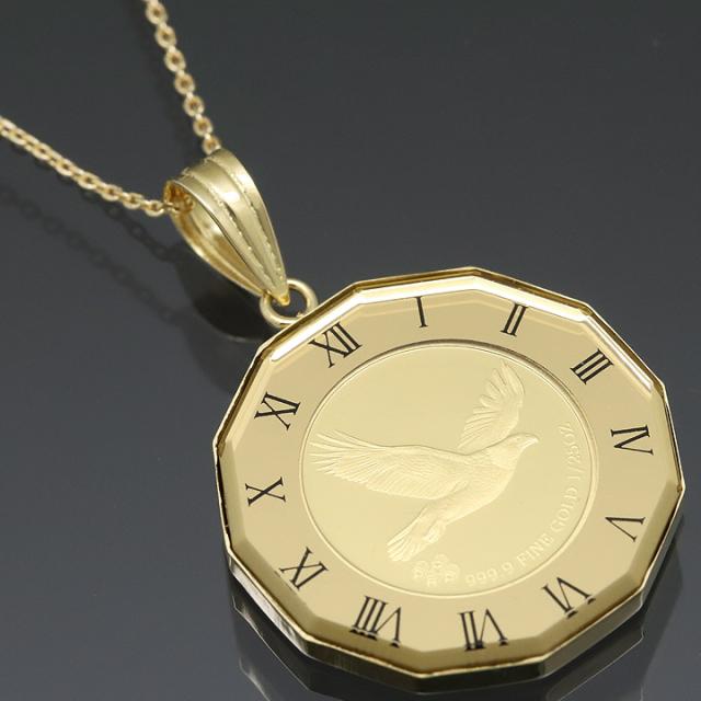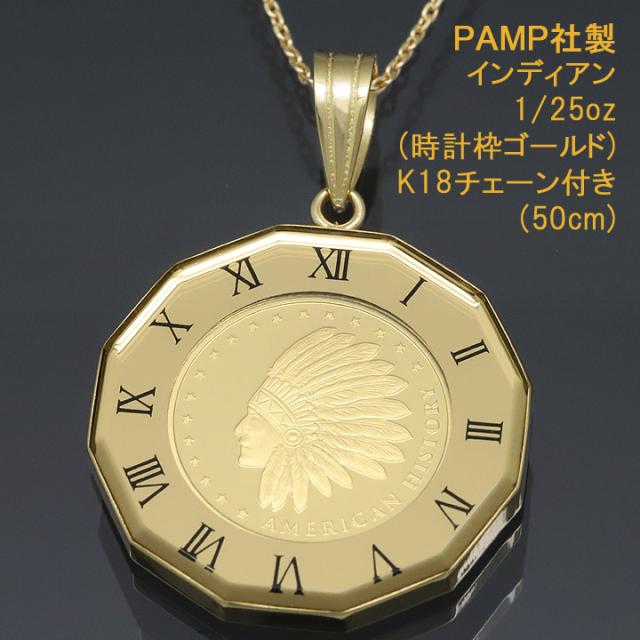 24金 コインネックレス ペンダント インディアン K24 純金 1/25oz PAMP社製 時計枠ゴールド K18チェーン付 【誕生日 お祝い プレゼント 贈り物 ギフト】【dgpcp】