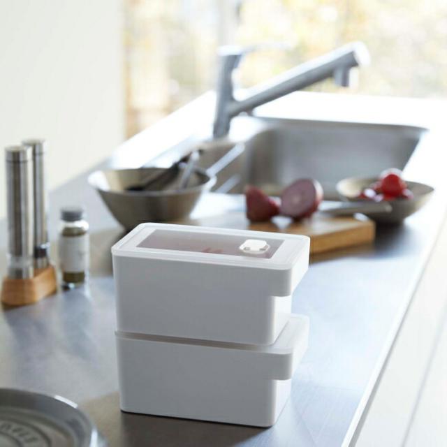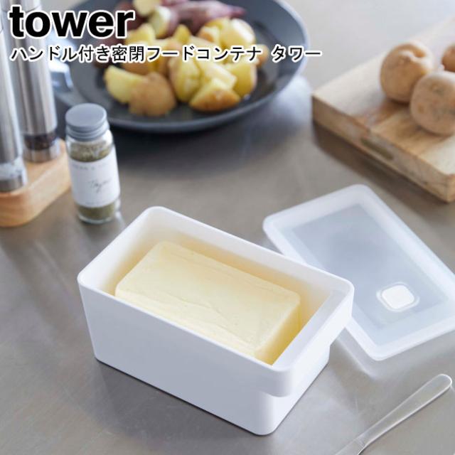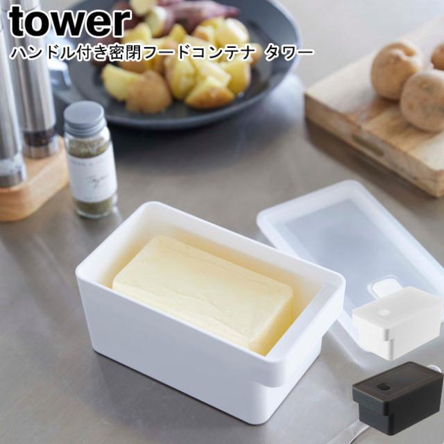 MM1 ハンドル付き密閉フードコンテナ タワー 山崎実業 tower ホワイト ブラック 7707 7708 バターケース 保存容器 1500ml ストッカー butter バター保存 乾燥防止 大容量 業務用 食品保存 キッチン収納 シンプル おしゃれ スタイリッシュ モノトーン YAMAZAKI ヤマジツ