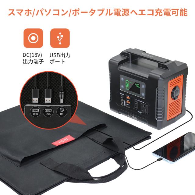 Gofort ソーラーチャージャー 60W ソーラーパネル充電器 折りたたみ式 DC18V USB5V 高変換効率22% スマホ ノートパソコン ポータブル電源充電器 太陽光パネル
