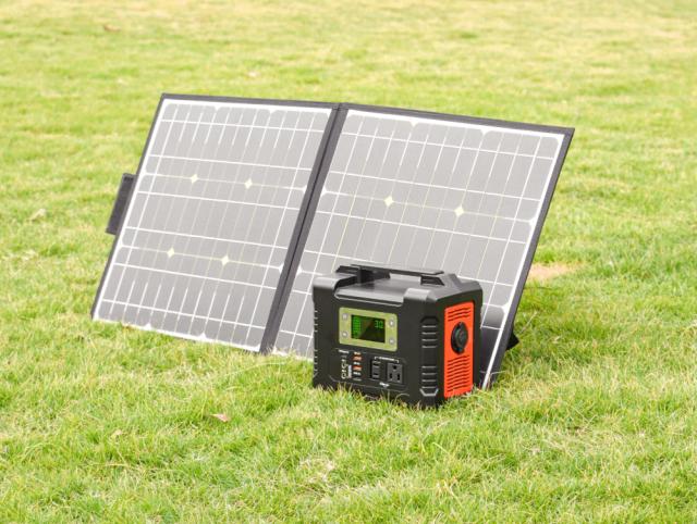 【使用方法】 使用の際には、晴天時の直射日光下で、ソーラーパネルを展開して、ソーラーの接続前と後で表示ディスプレイのバッテリー残量メモリがわずかでも上昇していることをご確認ください。充電制御コントローラにインジケータランプが赤に点灯していると、充電が始まります。