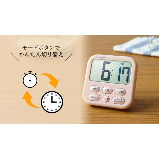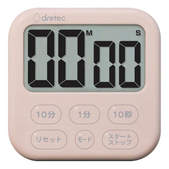 大画面タイマー シャボン6 液晶デジタル 時計付 立てかけスタンド マグネット付 ピンク ドリテック T-615PK