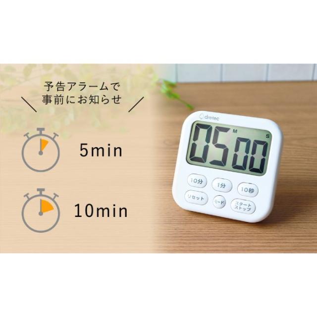 「10分」「1分」「10秒」単位で時間セットができるので、長時間でも素早くセットができます。カウントダウン、カウントアップ、リピート機能が付いていて、とっても便利! ■見やすい大画面表示 ■「5分前」「10分前」に予告アラームでお知らせ ■「10分」「1分」「10秒」単位でかんたんセット ■置き時計としても使える時計機能 ■カウントアップ機能、カウントダウン機能、リピート機能 ■壁掛けフック穴/スタンド/マグネット付