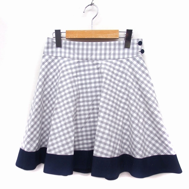 【中古】ボンメルスリー BON MERCERIE ギンガムチェック フレアスカート ミニ コットン 綿 36 グレー 灰 ネイビー 紺