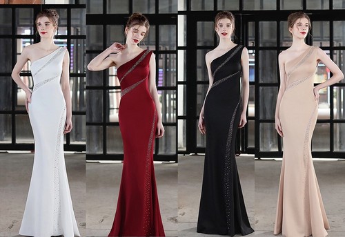 大きなサイズ(XLサイズ)エレガントとセクシーの二刀流ドレス ワンランク上のハイクオリティドレス ロングドレス キャバドレス キャバワンピ セクシーな肩魅せワンショルダーデザインに豪華なラインストーン装飾デザイン ストレッチロングドレス 全4色