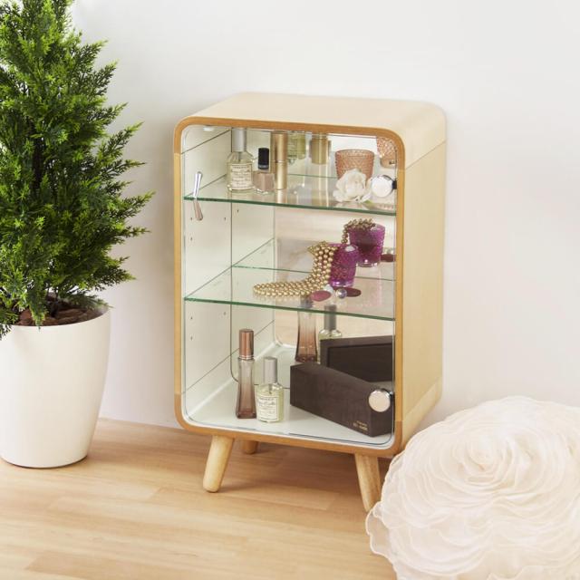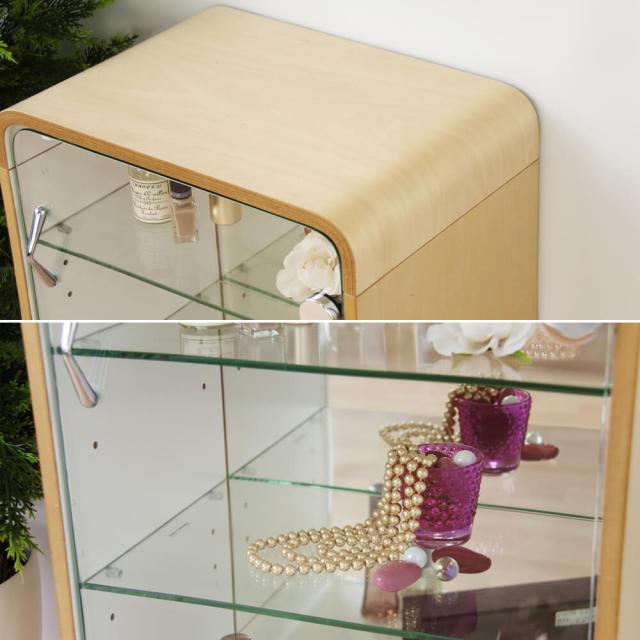 内側は真っ白なので飾るものの邪魔をせず、透け感のあるガラスと背面のミラーで美しくディスプレイすることができます。