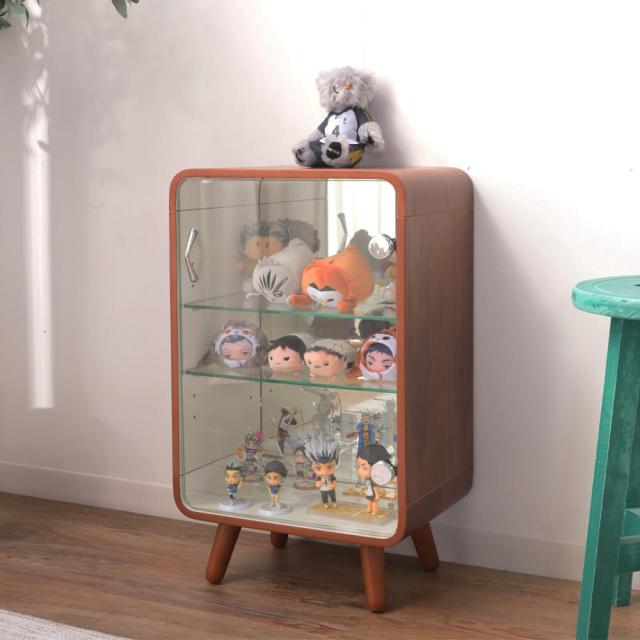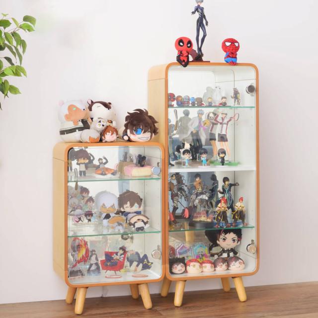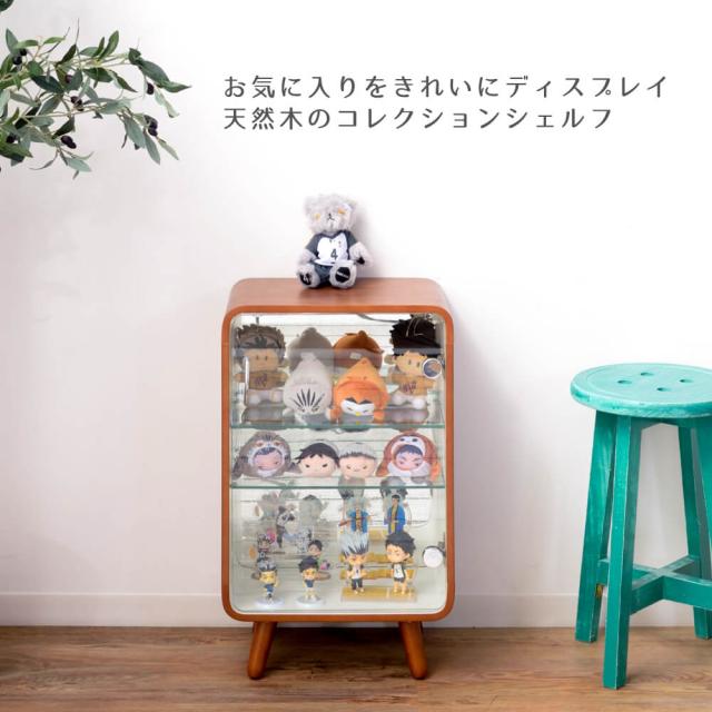曲木が美しい天然木のコレクションシェルフ。