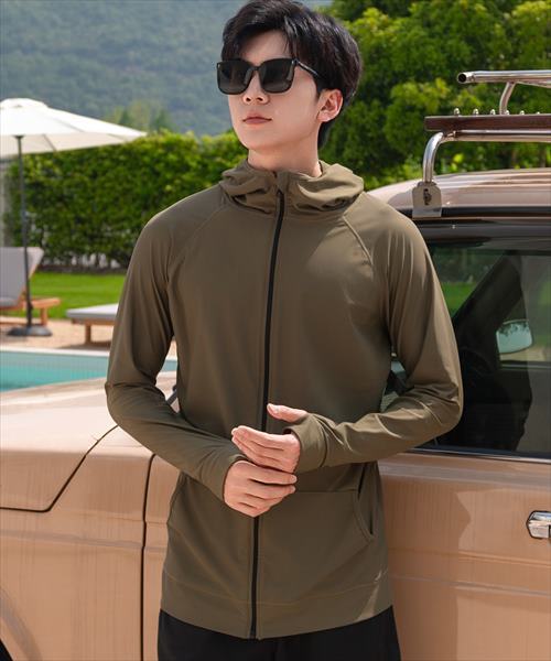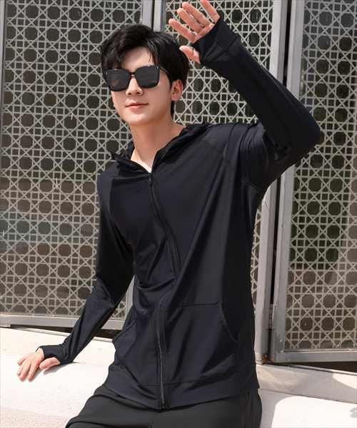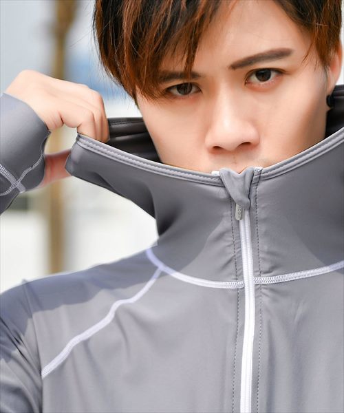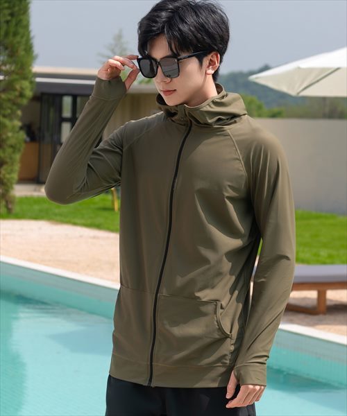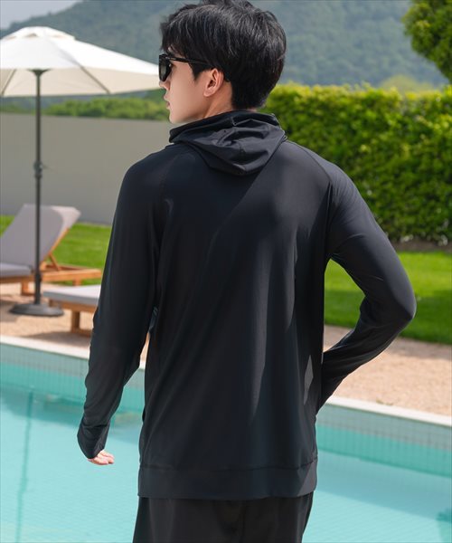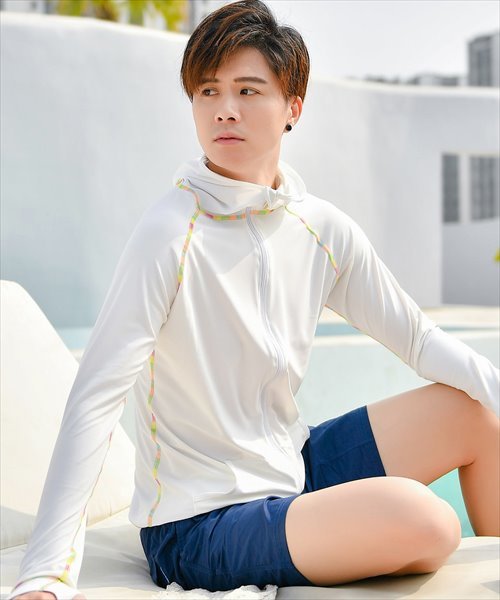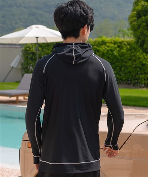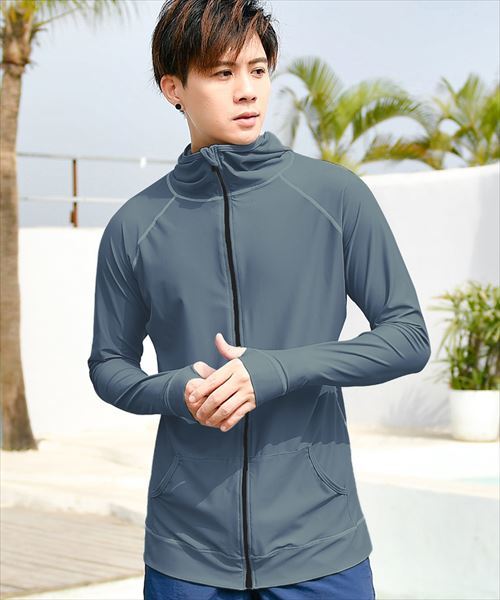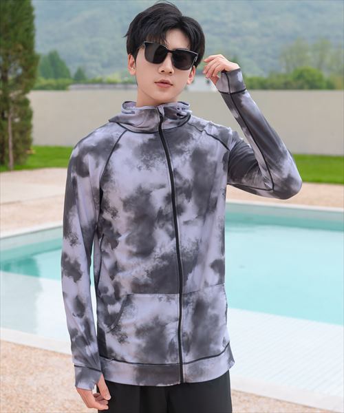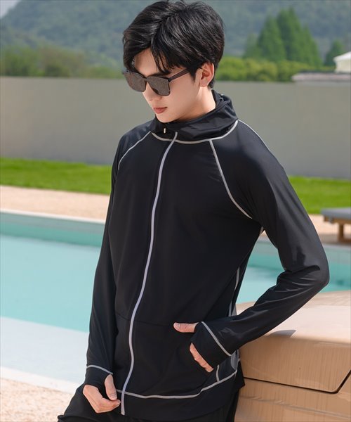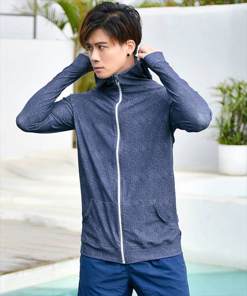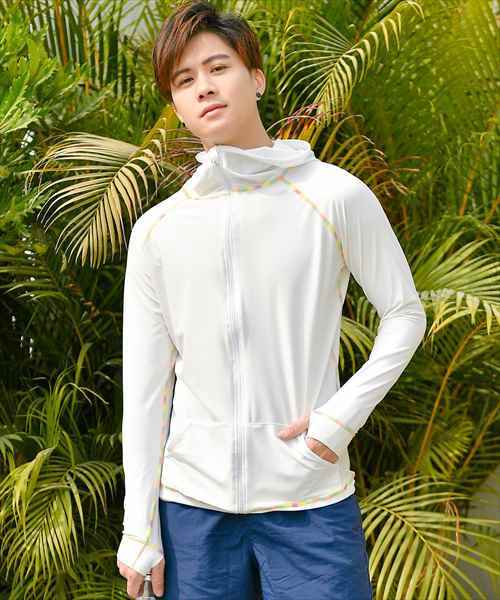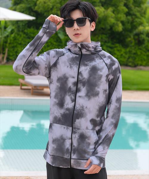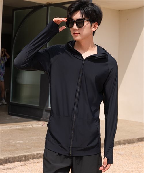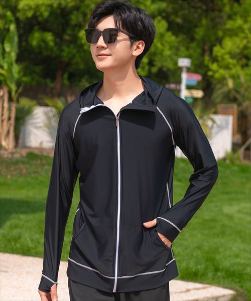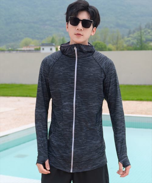 メンズ フード付きフロントジップ長袖ラッシュガード