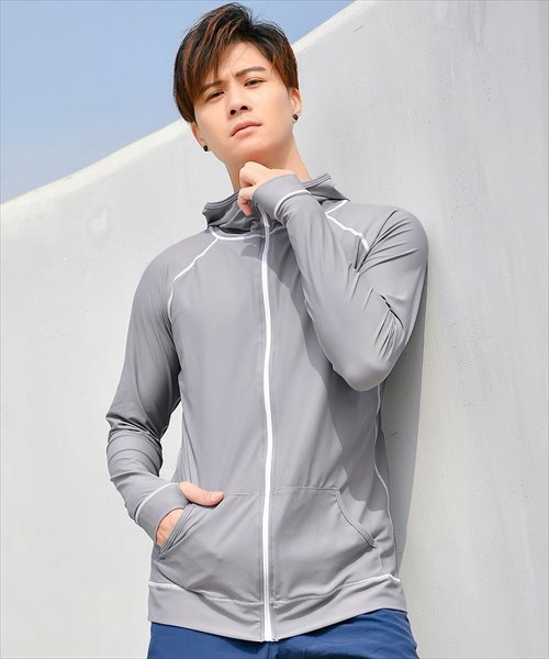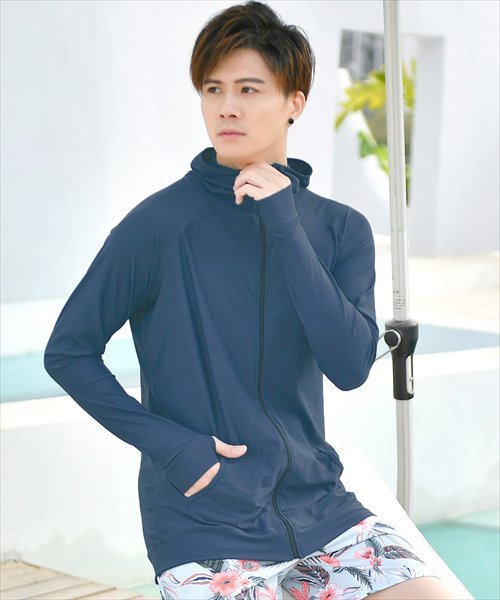 テディショップ(TeddyShop)/メンズ フード付きフロントジップ長袖ラッシュガード