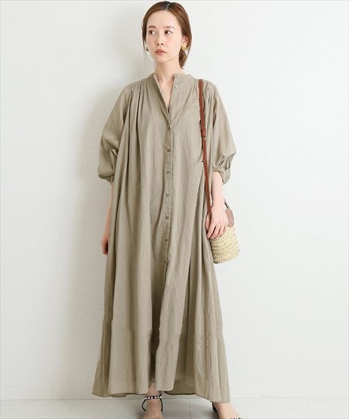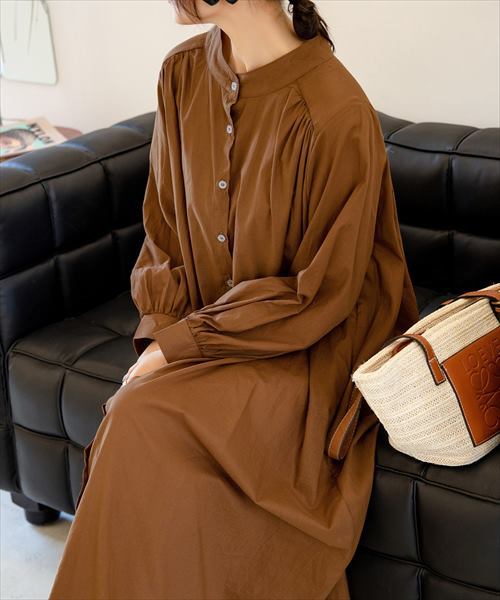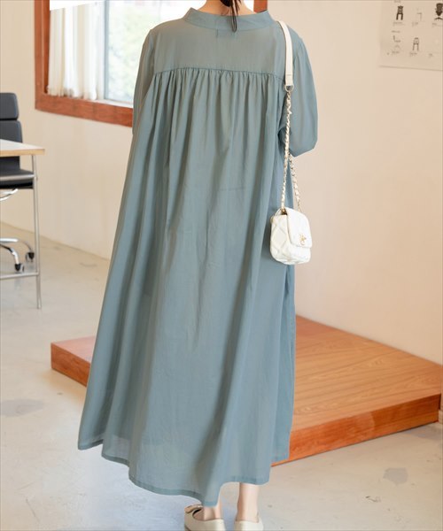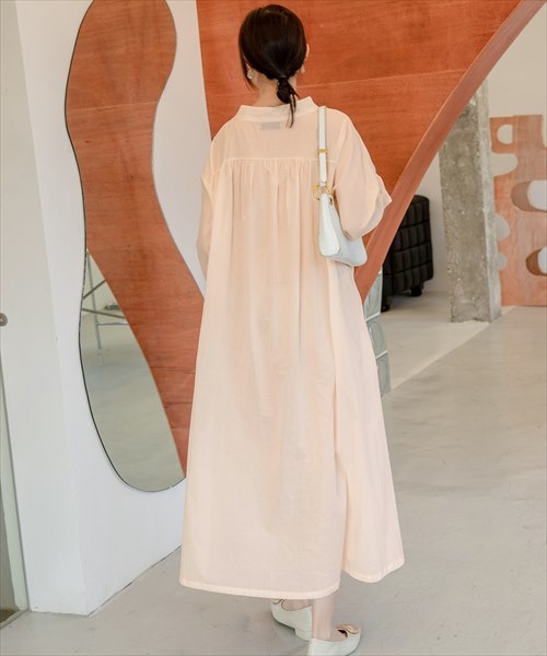 ノーカラーシャツワンピース