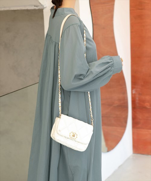 ノーカラーシャツワンピ
