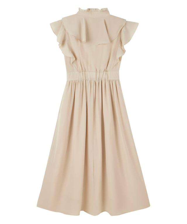 ふんわりしつつ上品なジョゼット素材で、かわいいもきれいも叶います。ホック開閉可能なフリルスタンドカラーで首元がキュッと締まることで大人っぽさがアップ。