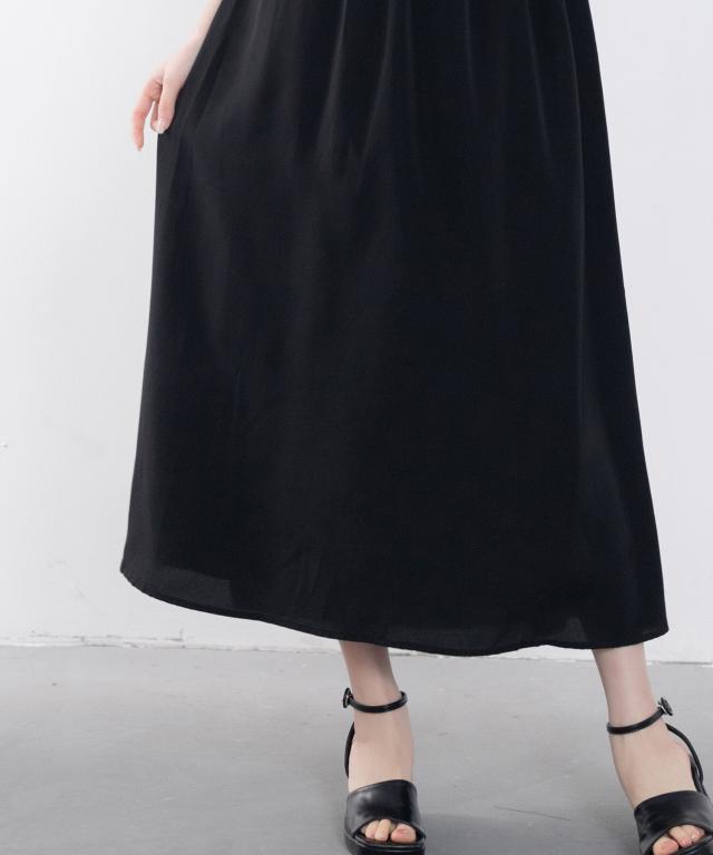 裏地付きで一枚で着ても安心して着用可能。アイボリーカラーでも透ける心配がなく素足で履けます。左脇にファスナーが付いているので、ファスナーが隠れてバックスタイルもきれいです。