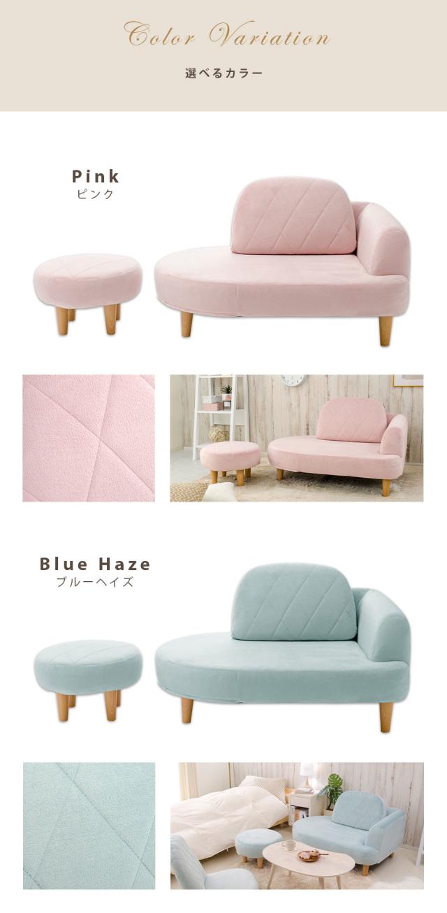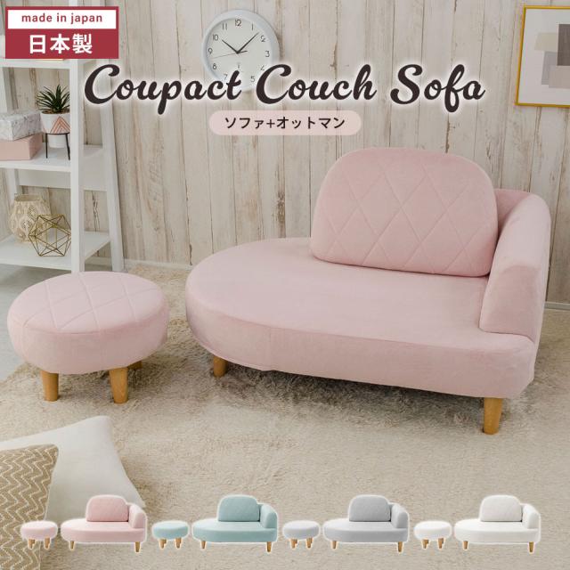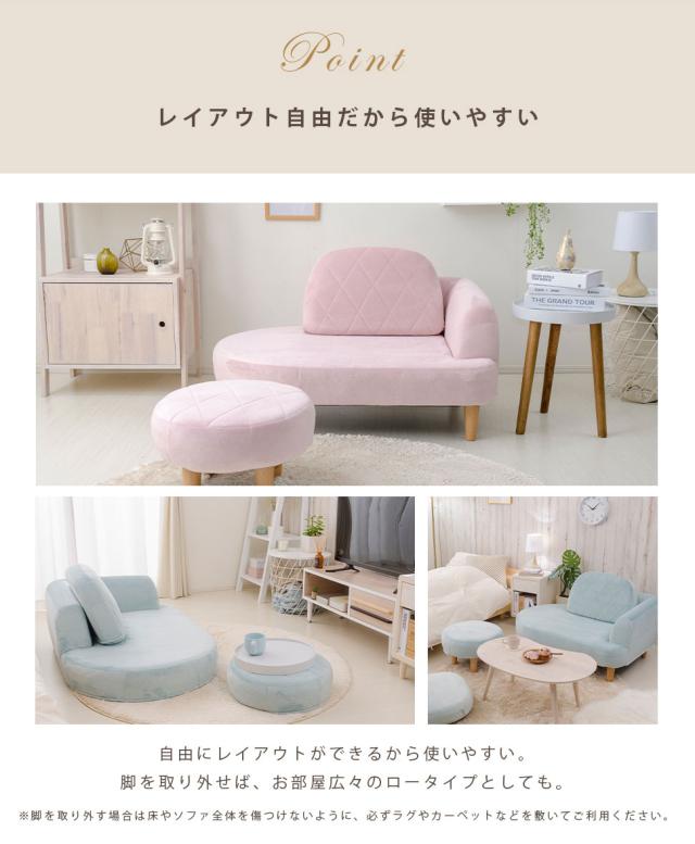 カウチソファ オットマン付き コンパクト ソファ かわいい 選べる樹脂脚 エレガント ダイヤモンドステッチ 大人カワイイ おしゃれ