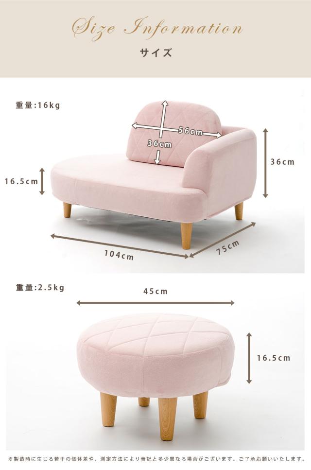 | [ソファ]幅104×奥行75×高さ36cm [背もたれ]幅56×高さ36cm [座面の厚み]16.5cm [オットマン]幅45×座面の厚み16.5cm ※いずれも脚の高さを除く。 |
