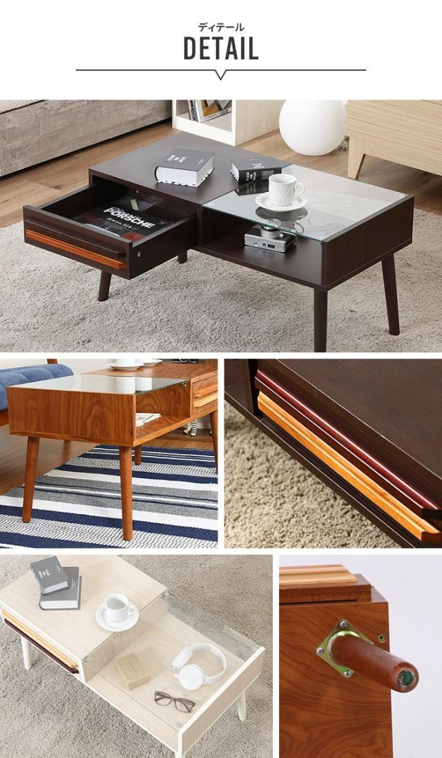 | 小材を使ったおしゃれな引出前板! ガラス天板下は自由にディスプレイして、自分仕様にカスタマイズ! 引出は前後両方から開きます。 |