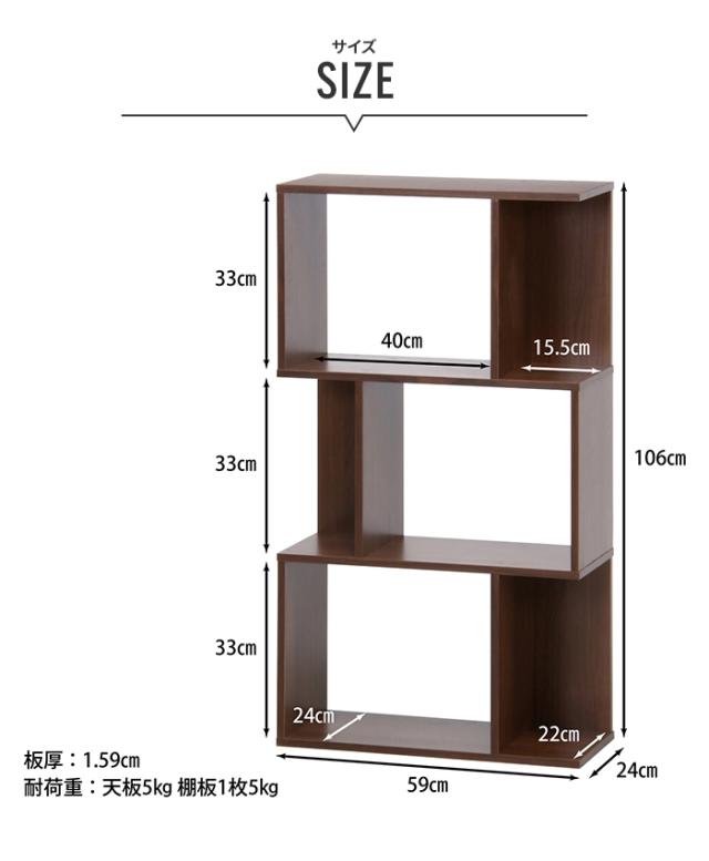 【値下げ】ラック 3段 木目調 59×24×106cm ジグザグラック オープンラック ディスプレイラック 棚 収納 フィギュア プラモデル トロフィー 写真 S型