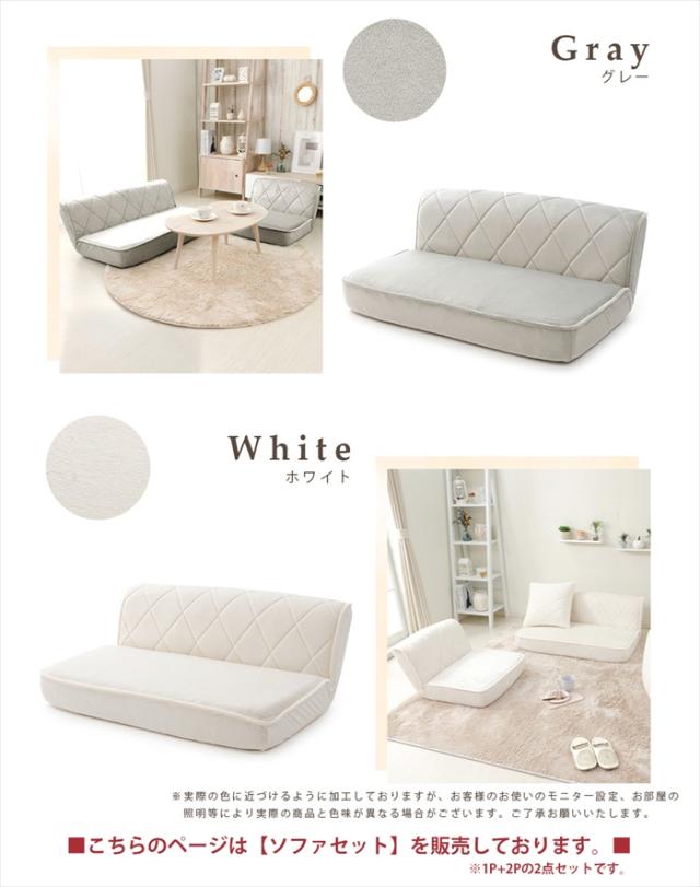 ソファセット ローソファー 1人用 2人用セット 大型 座椅子 ダイヤモンドステッチ リクライニング かわいい おしゃれ 日本製