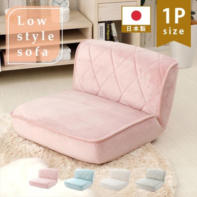 ローソファー 1人用 座椅子 ダイヤモンドステッチ リクライニング フロア ソファ 日本製 単身 リビング かわいい おしゃれ