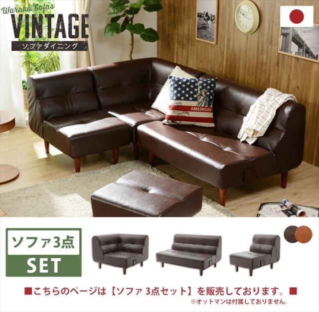 ソファ 3点セット ヴィンテージ ダイニングソファ セット チェア 椅子 ソファ メンズコーデ 男前 おしゃれ リビング 日本製