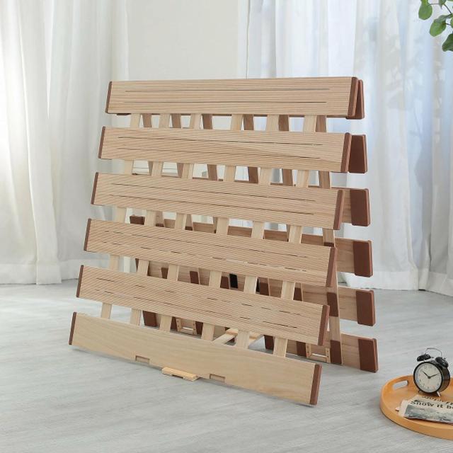 就寝中の熱や湿気を放出してくれる薄型のすのこベッドです。調湿効果と防虫効果に優れた天然の桐材を使用しているので、カビや菌の発生・増殖を抑えてくれます。立てるだけでそのまま布団が干せる2つ折れタイプなので、花粉や梅雨のシーズンなど、布団をなかなか干せない時にも活躍します。