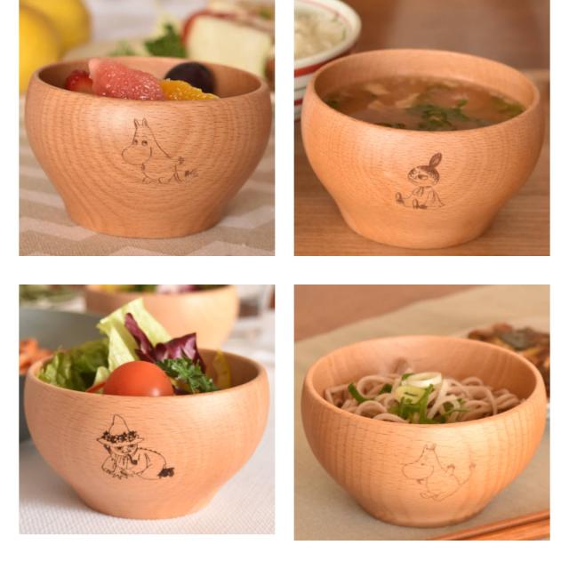 ムーミンのキャラクターたちと天然木の優しい風合いがマッチして、食卓を笑顔にしてくれます。サラダボウルやデザートボウルとしてぴったりのサイズで、スープなどの汁もの、ミニうどんにもお使いいただけます。