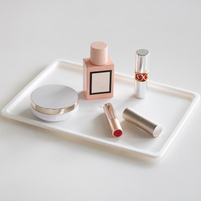 化粧品やネイルグッズ、アクセサリーの一時置き場としてもお使いいただけます。お部屋に飾る花やグリーンの台座にしたり、お気に入りのインテリア小物を並べたりといろいろなシーンで活躍します。