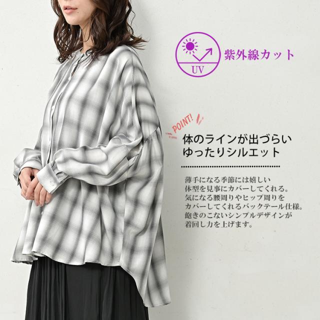 大きいサイズ レディース 長袖トップス 長袖シャツ 長袖ブラウス チェックシャツ ワイドシャツ 大きめシャツ シャツブラウス シャツチュニック チェック柄 長袖 バックギャザー 羽織り 春服 夏服 春トップス 夏トップス 春物 夏物 バンドカラー フロントボタン 前開きボタン ラウンドヘム バックテール バックシャン ステップヘム 長め着丈 お尻が隠れる着丈 お尻すっぽり丈 チュニック丈 透け感 ワイド身幅 オーバーサイズ ゆったり 大きめ 体型カバー こなれ感 紫外線カット UVカット UV対策 日焼け防止 洗濯機OK お手入れ簡単 ナチュラル 大人 カジュアル フェミニン きれいめ かわいい 着こなし おしゃれ 定番 春コーデ 夏コーデ ファッション 大きめ 女性 婦人用 ミセス 30代 40代 50代 2023 春 夏 白 M LL 3L 4L 5L 9号 13号 15号 17号 19号 cdo-sa-tp0148
