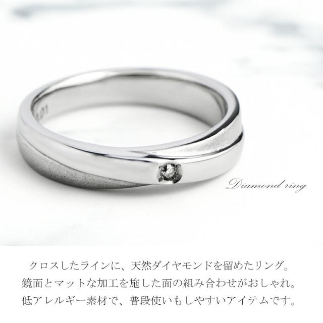 LAIRD レアド 天然 ダイヤモンド サンド クロスライン ステンレス レディース リング 7〜13号 サージカルステンレス 金属アレルギーフリー 指輪