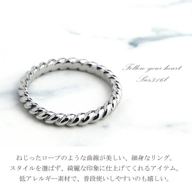 ILII イリィ ロープ ステンレス リング 7~13号 サージカルステンレス 金属アレルギーフリー 指輪 シンプル レディース ツイスト ねじり 縄 きれい