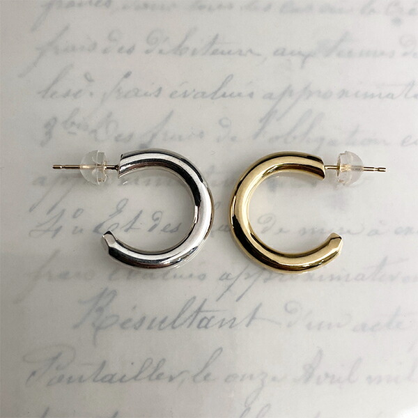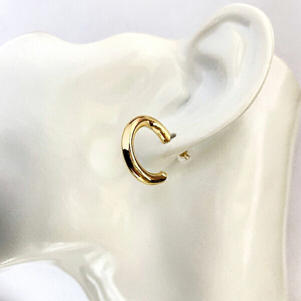 Quiet Room ゴールド ハーフ フープ シルバーピアス 1P 片耳用 ピアス ゴールドコーティング 18金 K18 ゴールド メンズ レディース シンプル