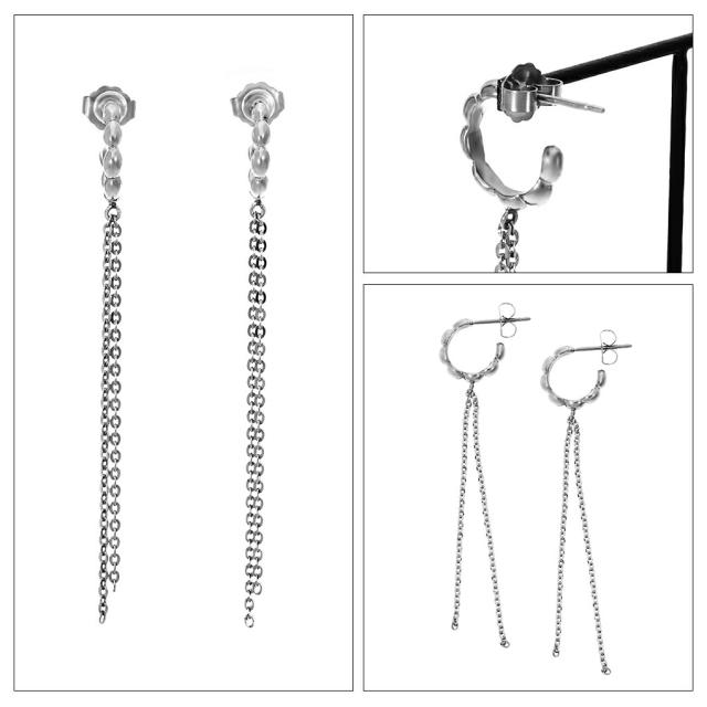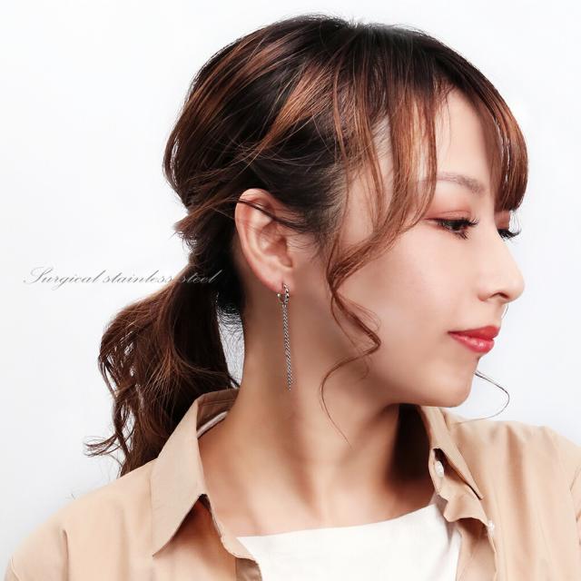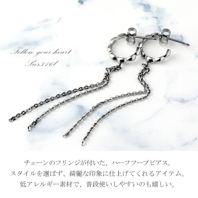 【ILII/イリィ】チェーン フリンジ ステンレス フープ ピアス(2P/両耳用)