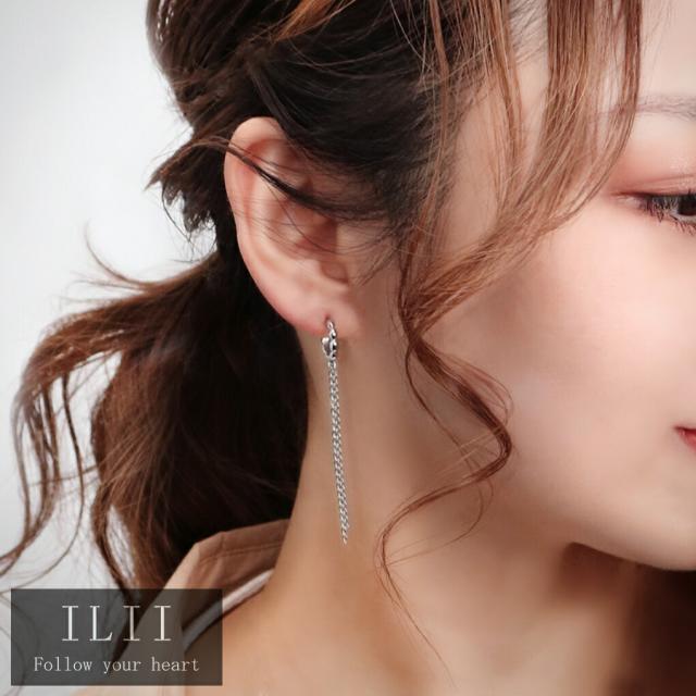 ILII イリィ チェーン フリンジ ステンレス フープ ピアス 2P 両耳用 サージカルステンレス 金属アレルギーフリー リングピアス フープピアス