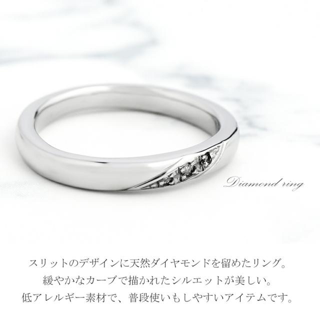 LAIRD レアド 天然 ダイヤモンド スリット カーブ ステンレス レディース リング 7〜13号 サージカルステンレス 金属アレルギーフリー 指輪 シンプル