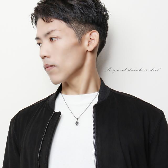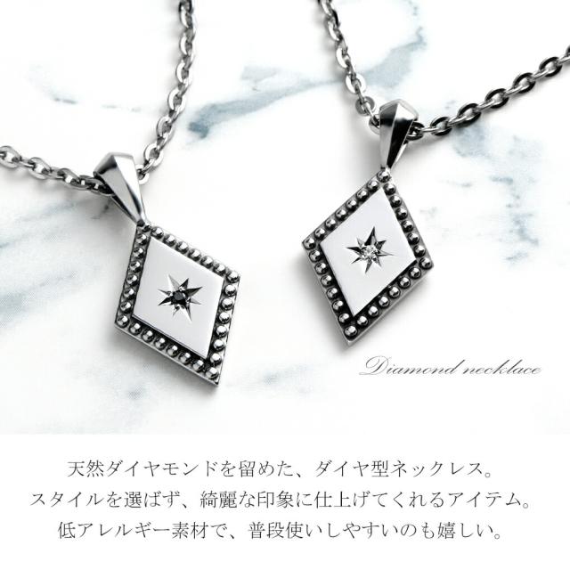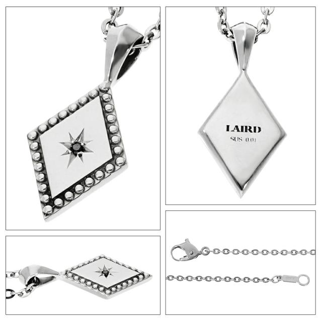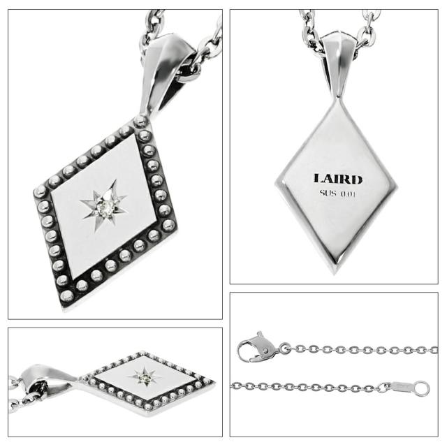 LAIRD レアド 天然 ダイヤモンド プレート ステンレス ペアネックレス 金属アレルギーフリー ペア ネックレス ペンダント アクセサリー ダイヤ型 菱型