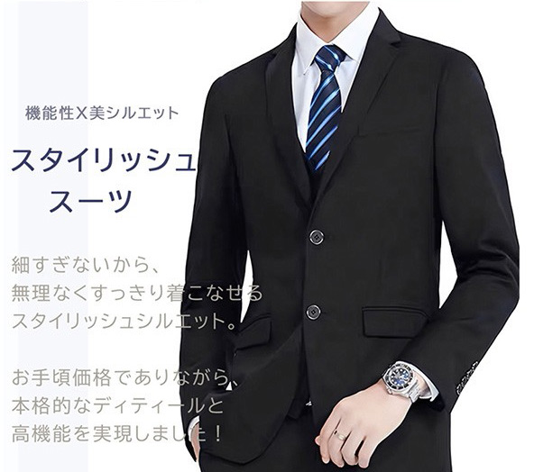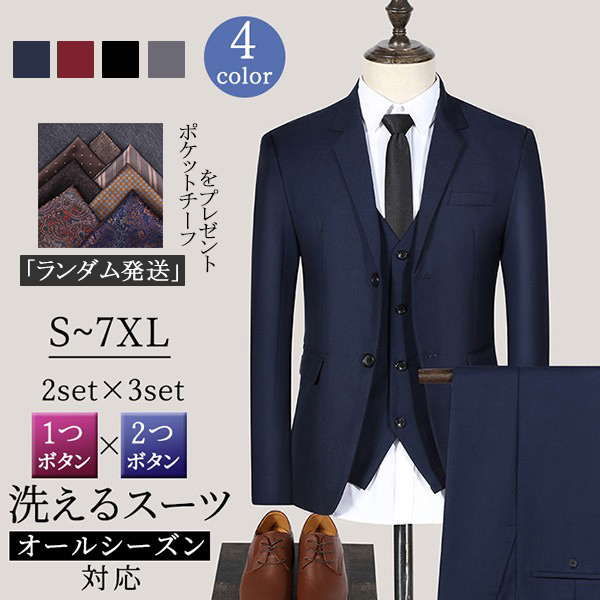 【ポケットチーフ付き】S~8L メンズ スーツ セットアップ 上下セット 洗える スリムスーツ メンズスーツ ビジネス スーツ セットアップ スリム 大きいサイズ オールシーズン 紳士服 背広 卒業式 入学式 春夏 ネイビー ブラック グレー レッド
