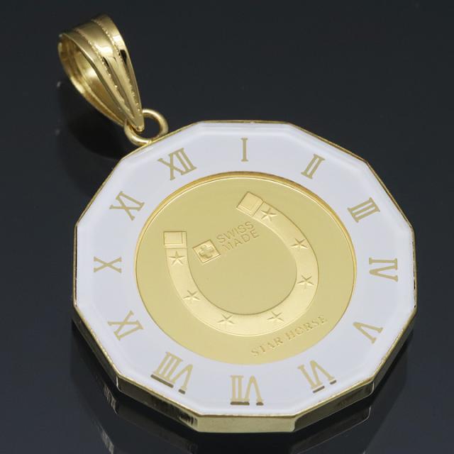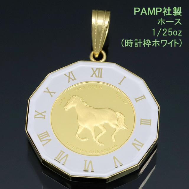 24金 コイン ペンダントトップ ペンダントヘッド ホース K24 純金 1/25oz 馬 蹄鉄 (ホースシュー・幸運・魔除け) PAMP社製 時計枠ホワイト 【誕生日 お祝い プレゼント 贈り物 ギフト】【dgpcp】