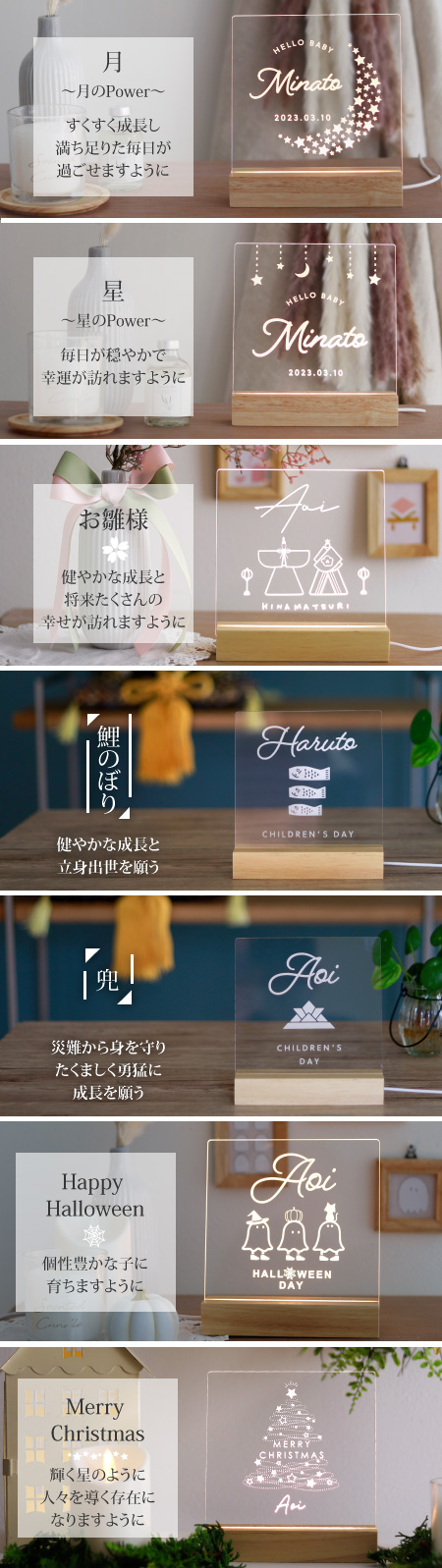出産祝い ギフト 命名札 命名書 お名前 命名プレート 赤ちゃん 名入れ メモリアルプレート お誕生日プレゼント ニューボーンフォト おしゃれ 授乳ライト名前旗 お雛様 雛祭り こどもの日 端午の節句 こいのぼり 兜 お祝い 飾り 子供の日 100日 クリスマス ハロウィン