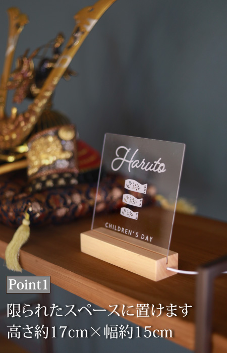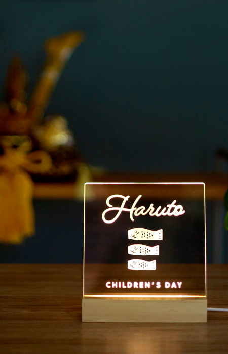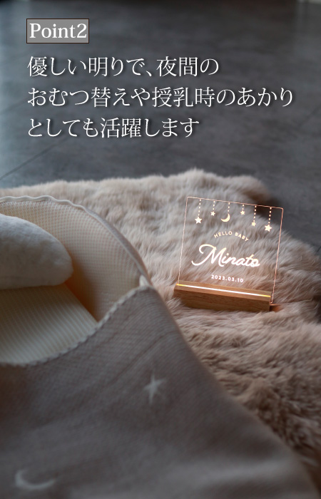 「名入れ」が出来るインテリアライト。記念日の贈り物として長く使えるアイテムは喜ばれます。少スペースで飾れるのでお部屋が手軽に節句などのお祝いムードに変身。片付けもカンタンで場所を取らないから、育児中でも負担になりません。「インテリア」「インテリアライト」「授乳ライト」「記念日撮影」にと色々な使い方で毎日を楽しく過ごして下さい。
