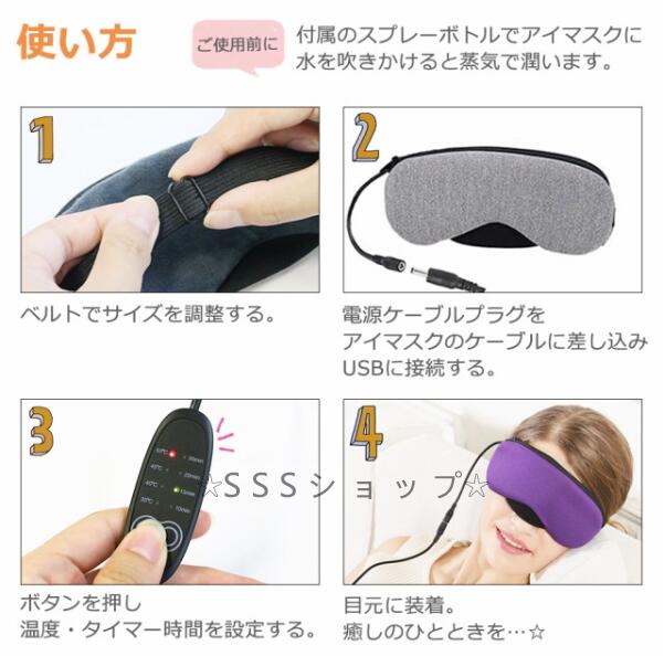 アイマスク ホットアイマスク 睡眠用 USB充電式 蒸気 アイウォーマー 繰り返し コードレス 繰り返し使える 安眠グッズ