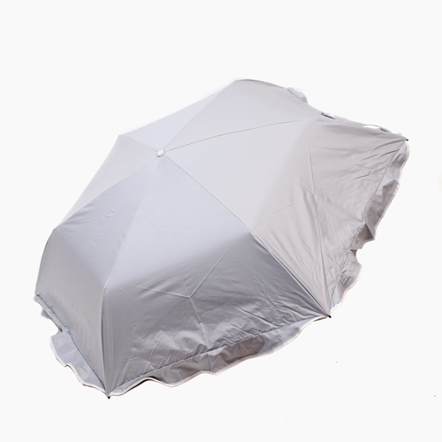 無地のグレーにラウンドフリルの付いた可愛らしいデザインで、大人っぽい上品さもある日傘は、 紫外線が気になる夏には毎日の必須アイテムになること間違いなし!