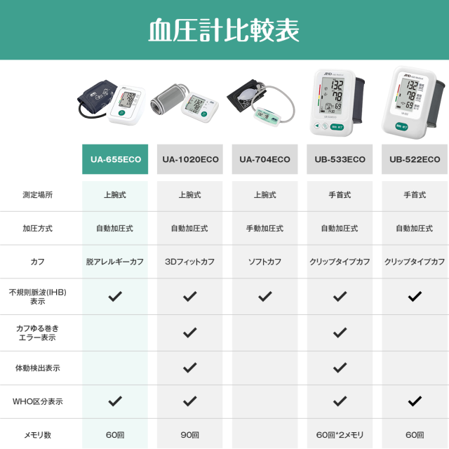 上腕式血圧計 A&D エー・アンド・デイ UA-655ECO シンプル コンパクト おまかせ加圧 脱アレルギーカフ 測定データ記憶 自動電子血圧計 血圧計 血圧 コンパクト 軽量